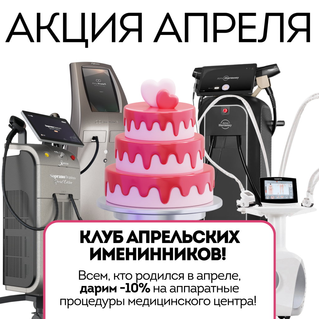 Всем, кто родился в апреле, дарим -10% на аппаратные процедуры медицинского центра!