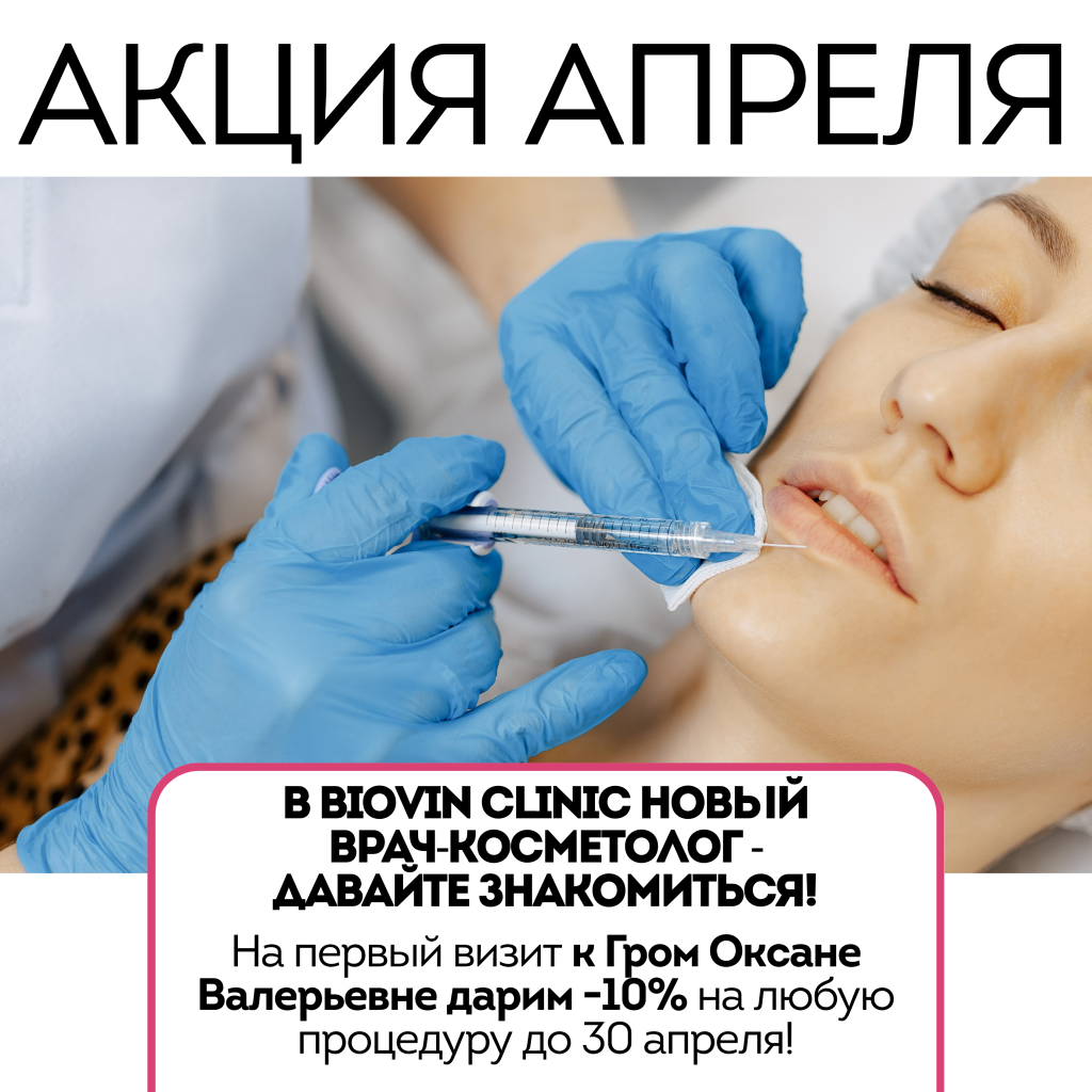 На первый визит к Гром Оксане Валерьевне дарим -10% на любую процедуру до 30 апреля!